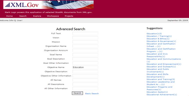 Screen Shots of MarkLogic’s StratML Query Prototype